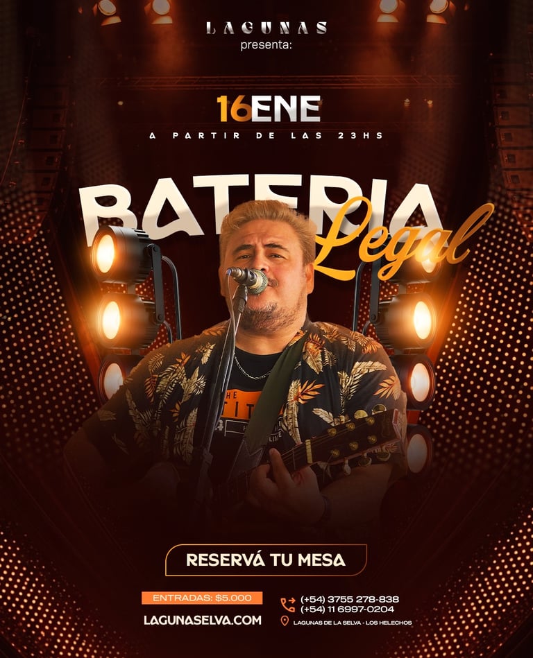 Desde Posadas llega una banda que trae música, ritmo, alegría y diversión. Por segunda vez en Lagunas de la Selva nos visita Bateria Legal!.